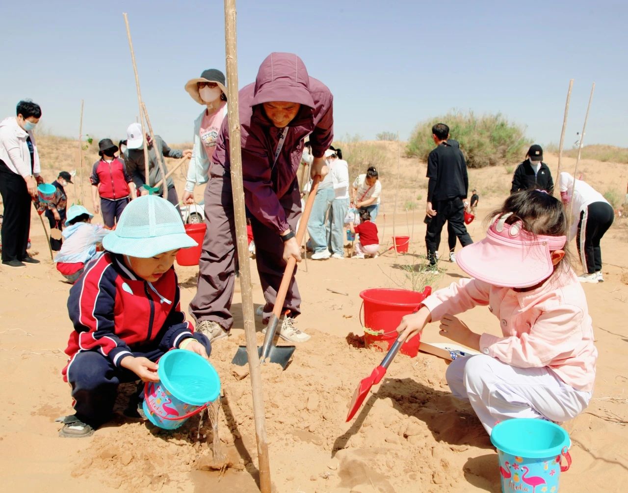 沿途的问答互动中,孩子们记住了白沙蒿、甘草等沙漠植物,也认识了骆驼、沙蜥等沙漠“居民”。家长董春芳感慨:“平时给孩子讲十遍爱护环境,不如带他来沙漠种棵树。”